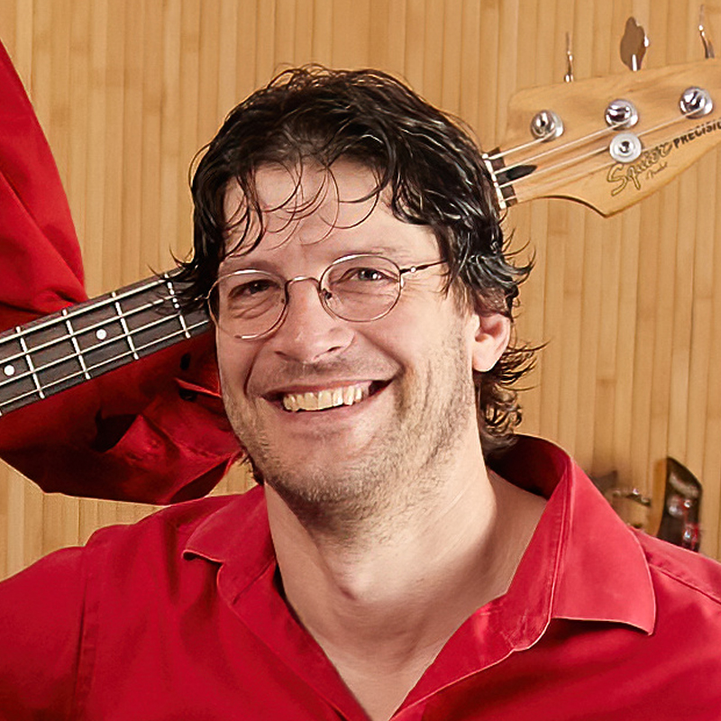 Frank Staudacher singt ebenfalls Solo und steuert seine Stimme dem 4-stimmigen Chor bei. Er spielt Bass sowie Schlagzeug und Klavier.